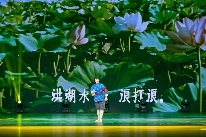 活动现场,第四代“韩英”扮演者马娅琴倾情演绎经典歌曲《洪湖水浪打浪》